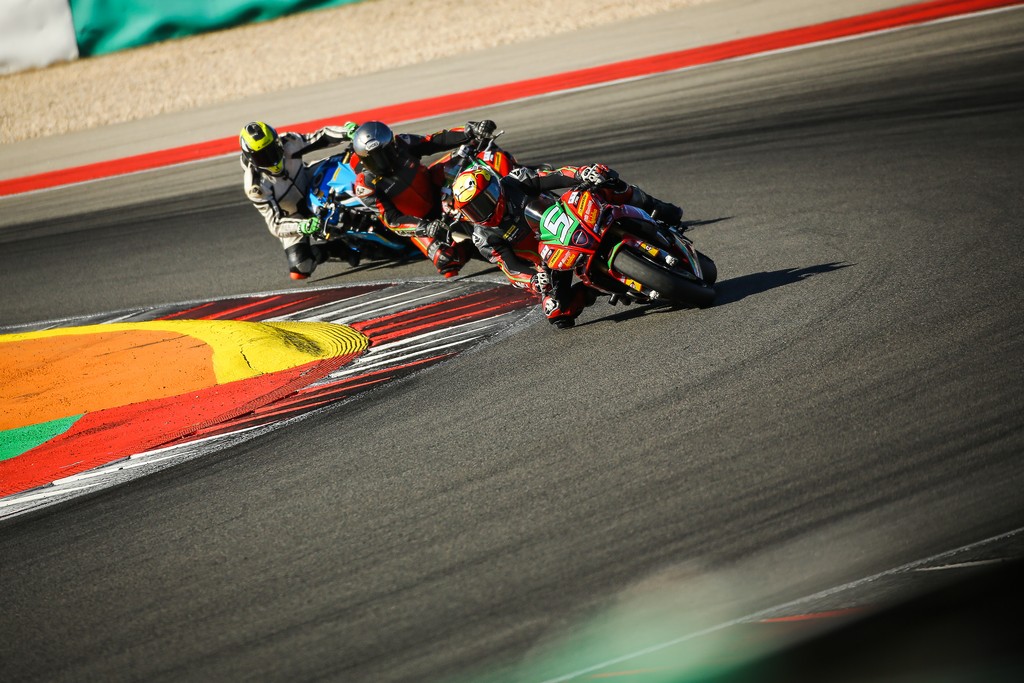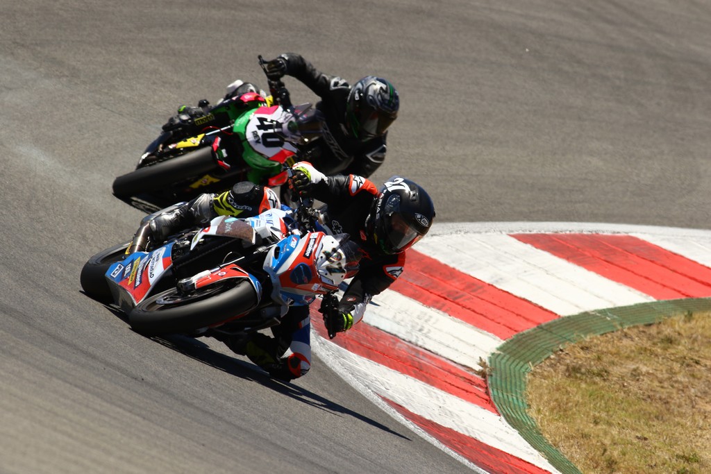 Com os 19 pilotos alinhados na grelha de partida, e o vento a assobiar forte, os semáforos apagam-se e é a BMW M1000R de Vicente que faz o holeshot na frente da Street Triple de Bottoglieri, mas este, mais rápido na parte técnica, sobe à primeira posição logo na curva 8 da primeira volta, derretendo depois Vicente as 6 décimas perdidas “lá atrás”, recuperando a liderança na recta da meta da volta seguinte. Bottoglieri, não baixa os braços e recupera o terreno perdido na recta da meta até à curva 3, chegando os dois à curva 4, lado-a-lado, tocando-se, mas felizmente sem outra consequência que a troca de lugares, ou pelo menos assim parece! Quem aproveita a situação é a S1000R de Almeida que sobe logo ali ao segundo lugar, anulando as 7 décimas perdidas para Vicente na volta 1, recuperando Vicente a posição na curva 9 dessa volta! Mais quente era difícil!!