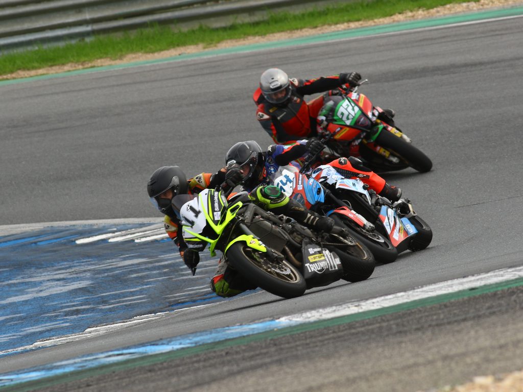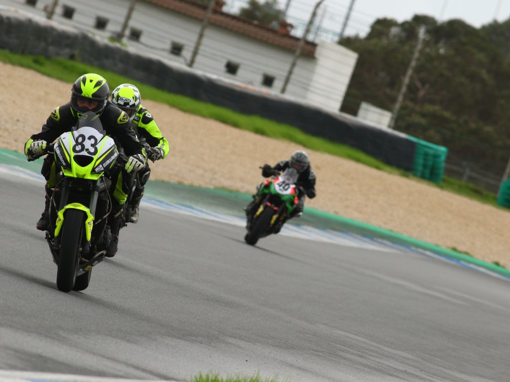 Atrás destes, aparece a Street Triple 765 de Cyrille Schertenleib #74, seguido pela M1000R de Paulo Vicente #62 com a TLC de Carlos Pinheiro a fechar a linha e abrir os tempos no segundo 13. A Street Triple 765 de Bérton, divide a linha seguinte com a S1000R de Duarte Amaral #10 e a TLC de André Capitão.