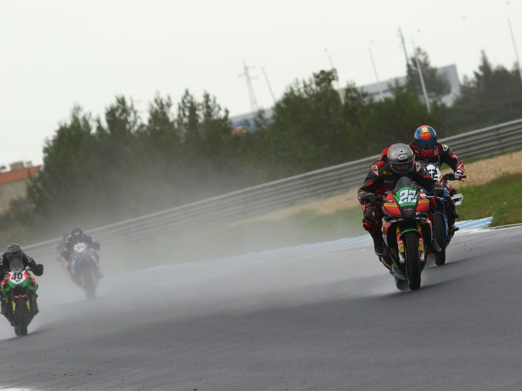 Atrás das TLCs de Pinheiro e Felgueiras, ficou a BMW de Perez que conseguiu superar as Triumph de Bérton, Schertenleib e Bottoglieri, com Bérton a passar o seu amigo da “french connection” na penúltima volta. Bérton, conseguiu assim reduzir a desvantagem para o líder da classe, para apenas 6 pontos, deixando as decisões para a corrida de Domingo. A Suzuki de Pires, termina um lugar acima da sua qualificação, depois de ter feito um bom arranque e subido 6 posições na primeira volta. Separado deste pela TLC de Silva, posicionou-se o estreante Therouin que superou a restantes TLCs. Uma estreia que o desconhecimento da moto e as condições meteorológicas, não favoreceram. Sousa e a sua Tuono preferem desistir a enfrentar os riscos que a pista escorregadia, apresentava.